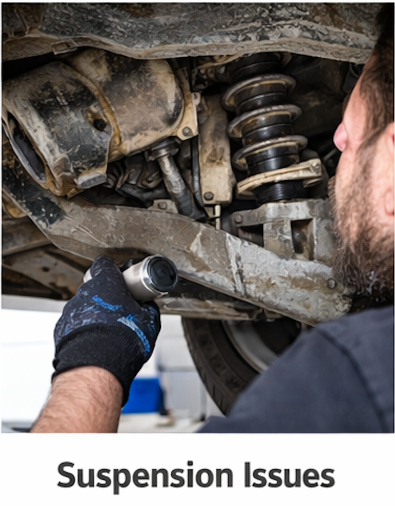 Your vehicle’s suspension system includes parts like shocks, struts, control arms, and bushings that help maintain stability.